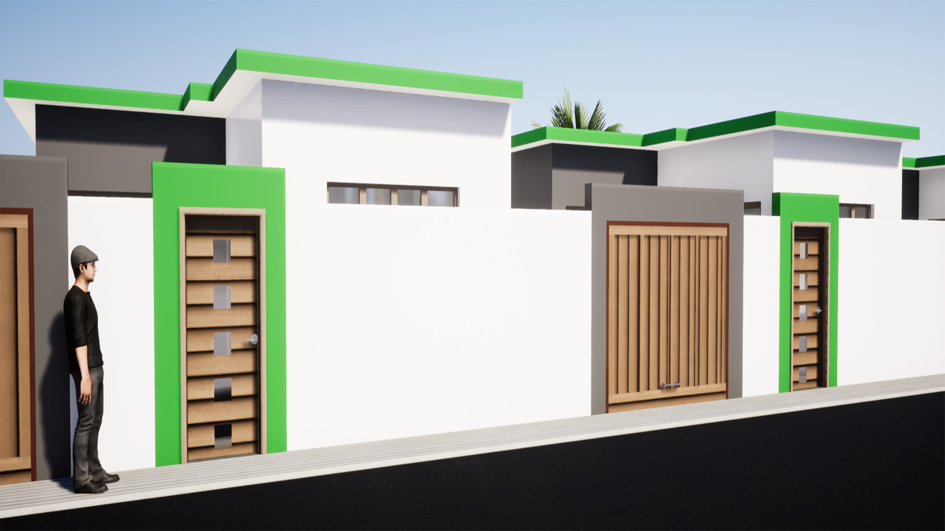Plusieurs types de maisons individuelles sont proposés allant du type économique, moyen au pavillonnaire grand standing. La cité offrira un aménagement extérieur achevé, composé de mobilier urbain (bancs, luminaire, parking,…), de petits espaces verts, une bande verte jalonnant les 2 boulevards de 30m. Les essences seront sélectionnées en fonction du climat (palmiers, plantes grasses, cactus, bougainvilliers, hibiscus…).