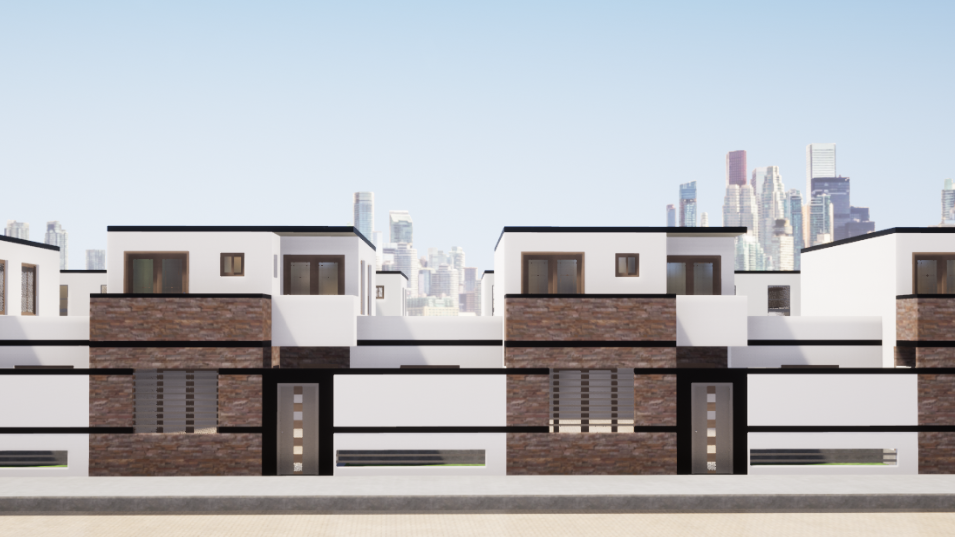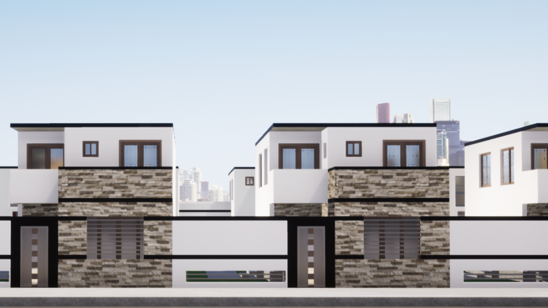 Plusieurs types de maisons individuelles sont proposés allant du type économique, moyen au pavillonnaire grand standing. La cité offrira un aménagement extérieur achevé, composé de mobilier urbain (bancs, luminaire, parking,…), de petits espaces verts, une bande verte jalonnant les 2 boulevards de 30m. Les essences seront sélectionnées en fonction du climat (palmiers, plantes grasses, cactus, bougainvilliers, hibiscus…).